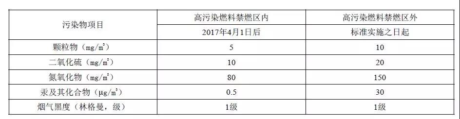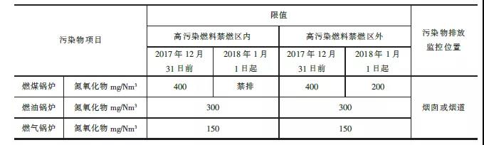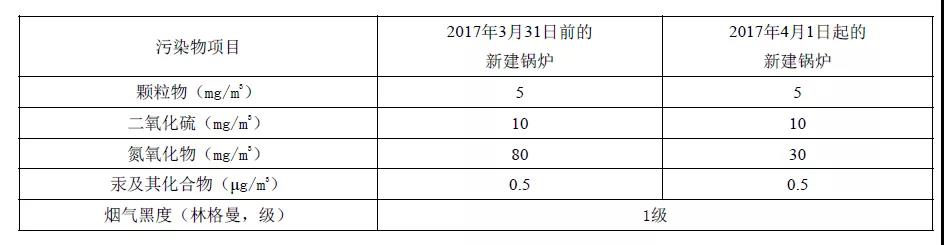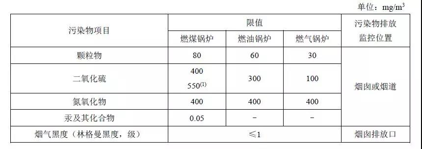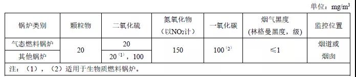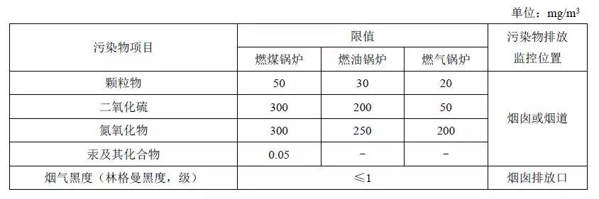 注:自2014年7月1日起新建鍋爐執(zhí)行表2的排放限值。