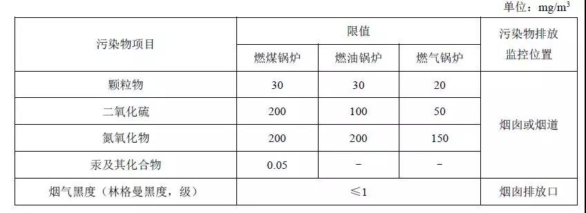 表3 重點(diǎn)地區(qū)鍋爐大氣污染物特別排放限值(GB13271-2014)