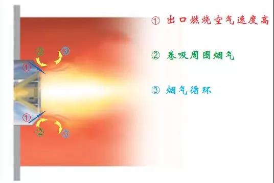 分級(jí)燃燒技術(shù)雖然可以一定程度降低氮氧化物的產(chǎn)生,但是很多燃燒器在實(shí)際使用中沒(méi)有完全實(shí)現(xiàn)助燃空氣和燃?xì)獾某浞只旌希瑺t膛內(nèi)存在局部高溫區(qū),其溫度高于產(chǎn)生熱力型NOx的溫度,造成NOx濃度超標(biāo)。另一方面,有可能出現(xiàn)燃料和空氣的混合流動(dòng)不佳,造成一氧化碳超標(biāo),局部積碳等不完全燃燒的現(xiàn)象。為了降低反應(yīng)溫度,需要盡可能使火焰分散,擴(kuò)大火焰形狀,也就是說(shuō)需要結(jié)合爐膛配合使用,而大多是情況是爐膛體積有限,為了避免火焰相對(duì)爐膛過(guò)大,通常會(huì)降低燃燒器的輸出功率,這樣可以降低NOx濃度及保證充分燃燒,但是缺點(diǎn)是鍋爐的功率下降了,而且有煙氣冷凝的風(fēng)險(xiǎn)。